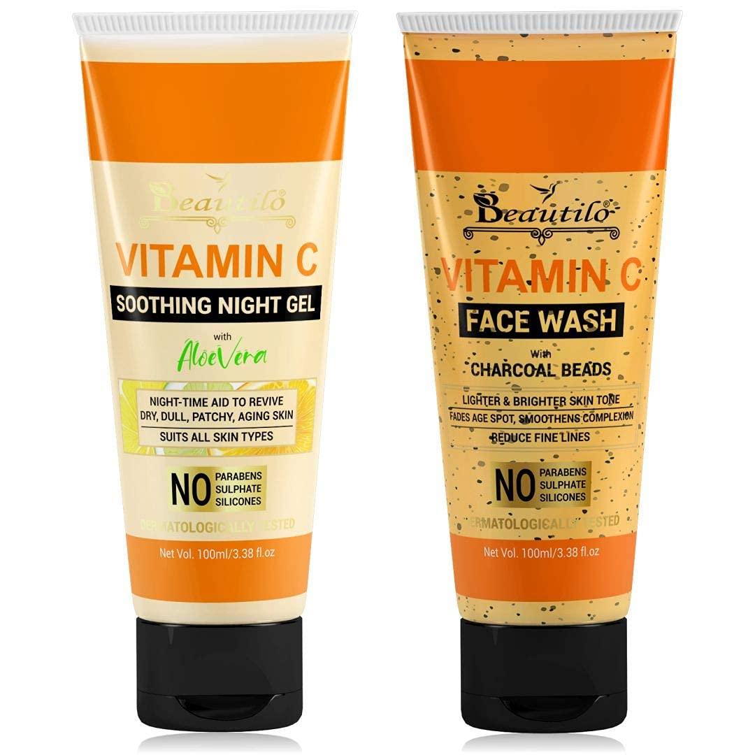 - Vitamin C is excellent at fighting free radical damage keeping your skin healthy and radiant. Formulated with actives that help to energize tired skin and improve radiance Our pure vitamin c sleeping night gel is the perfect indulgence for reviving tired, dull skin This Face Wash & Soothing night gel is dermatologically tested & is suitable for all skin types.