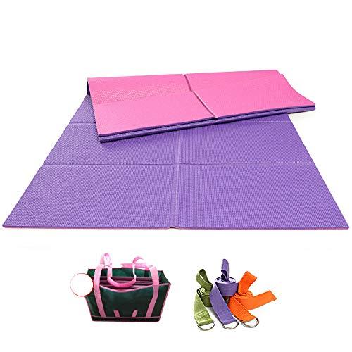 - [can be folding],We'll give it away for free(travel bag and Carrying Strap).This mat is 8 millimeters thick and 72 inches long by 31 inches wide, After folding size is 30CMx25CMx11CM(11x9.8x4.3inches)It is compact enough to fit inside a bag or backpack and weighs less than three pounds,making it easy for traveling,whether taking a trip for vacation or business,you can exercise for Yoga,Pilates,Floor exercise,Fitness,Aerobics,Martial arts,Aerobic exercise,etc