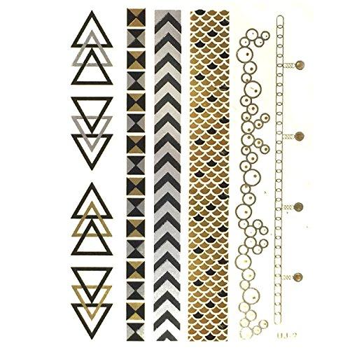 Allydrew Large Metallic Gold Silver and Black Body Art Temporary Tattoos, Aquatic Bands