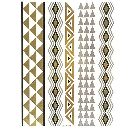 Allydrew Large Metallic Gold Silver and Black Body Art Temporary Tattoos, Bands