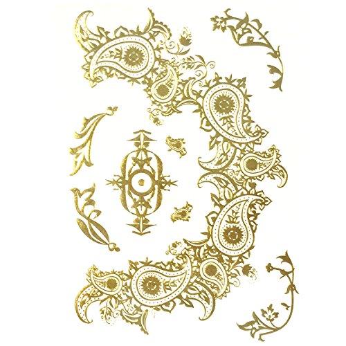 Allydrew Large Metallic Gold Silver and Black Body Art Temporary Tattoos, Boteh Motif