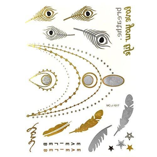 Allydrew Large Metallic Gold Silver and Black Body Art Temporary Tattoos, Feathers, Necklaces