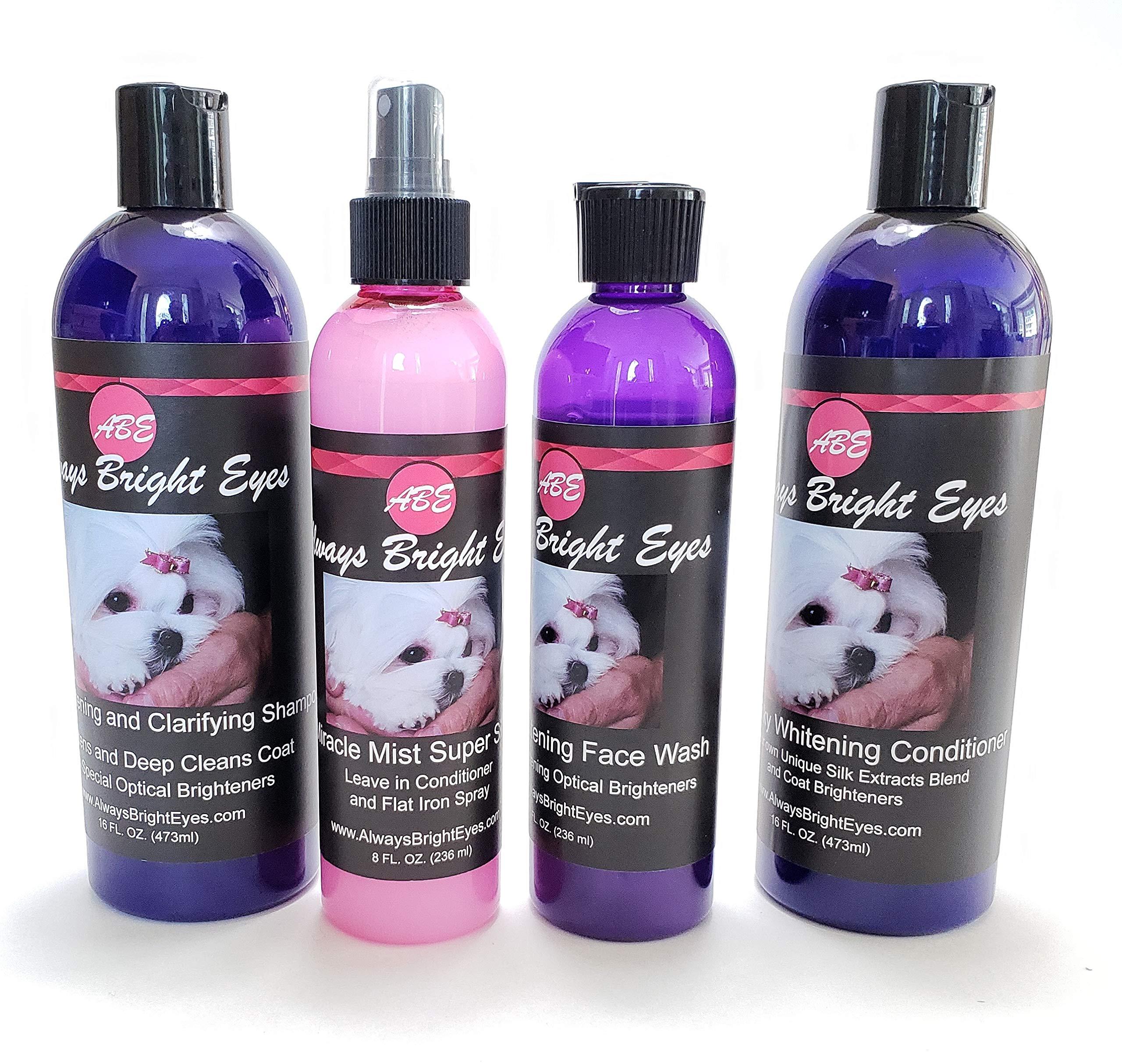 - You also get a 16 oz. bottle of our super silky whitening conditioner for a clean, sleek healthy coat. Also, enhanced with optical brighteners...