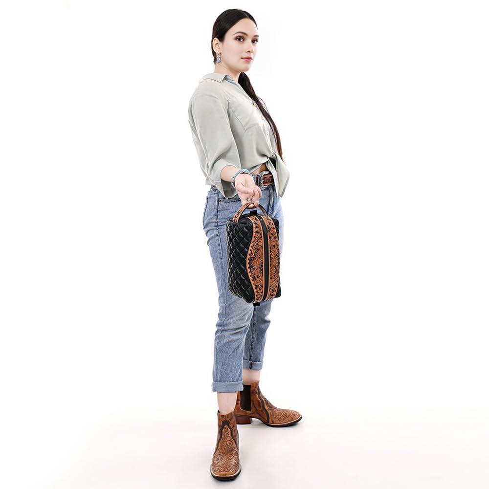 - Detailed Hand tooled, carved and finally antique hand finished exquisitely done by the finest artists and craftsmen in the country. Vegetable tanned American Genuine Cowhide Leather. Available in Size: 5in (H) X 10.5in (W) X 5in (D)