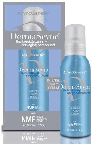 AminoGenesis DermaScyne 2 Serum Intense Daily Serum 2oz As you get older, your skin faces a lifetime of abuse from the sun and other environmental factors. This leads to the eight most common signs of aging, namely fine lines and wrinkles sun spots and discoloration enlarged pores dryness loss of firmness uneven skin tone loss of smoothness texture loss of radiance and luster This is because your skin is comprised of dozens of different proteins. Over time, these proteins break down. To maintain your skins youthful appearance, then, you have to repair or replace these critical proteins. To do this, however, your skin needs to a plentiful supply of protein precursors to naturally perform this process. Thats where AminoGenesis DermaScyne 2 Serum Intense Daily Serum comes in. As the only antiaging compound that delivers 25 key protein precursors that support crucial protein, such as collagen and elastin. The results, fine lines