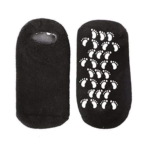 Description Specification: Ingredients: 98% gel + 0.5% rose essential oil + 0.5% olive oil + 0.5% jojoba oil + 0.5% vitamin E Colors: black Condition: 100% brand new and good quality Material: TPR gel, cotton, elastic yarn Size : 22 x 9.5 cm (one size fits most women) One pair weight: 179 g How to use: Soak and wash your feet in warm water. Wait until your dry skin has softened. Rub it gently over the calloused area, then dry your skin. Apply some feet cream Wear the socks Washing Instructions: Hand wash. No bleach, no dry cleaning. Neutral detergent is preferred. Not direct sunlight. Wash in water below 85F. Do not peel the gel in the socks. No dryer Packing List: 1 pair of Gel Spa socks