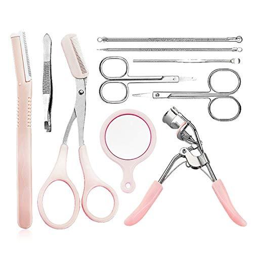 - PACKAGE INCLUDING - 10pcs, which are 1 x eyebrow razor, 1 x eyebrow tweezer, 1 x eyebrow comb scissors, 1 x makeup mirror, 1 x eyelash curler, 1 x eyebrow scissors, 1 x nose hair clipper, 1 x ear pick, 1 x double-headed acne needle, 1 x double-headed extruding ring.
