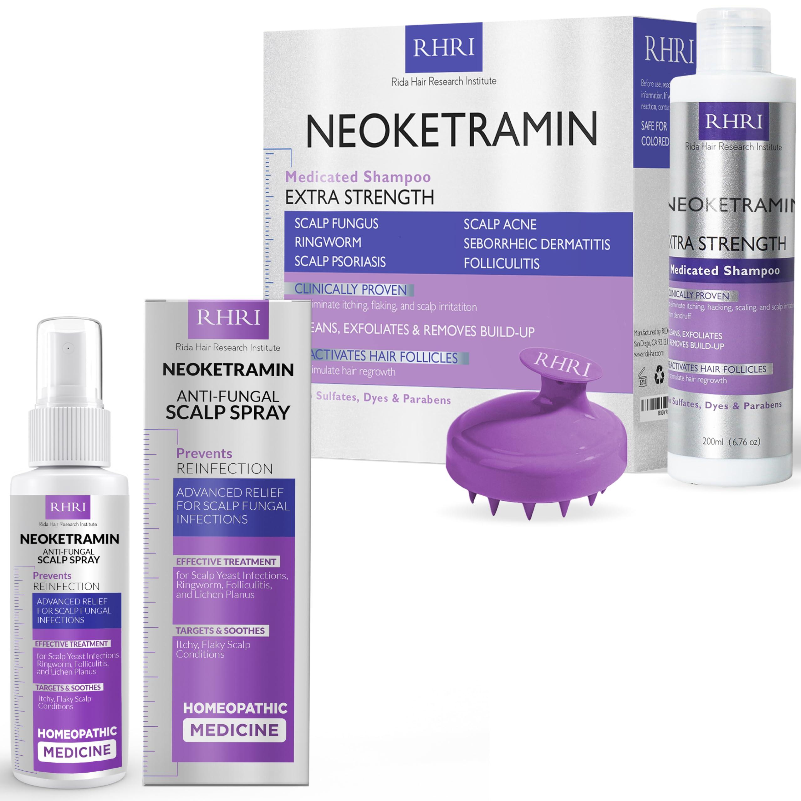 - Comprehensive Scalp Care: The Neoketramin bundle includes both a medicated anti-fungal shampoo and a targeted spray, offering an all-in-one solution to combat dandruff, folliculitis, psoriasis, ringworm, and other scalp irritations for both men and women.