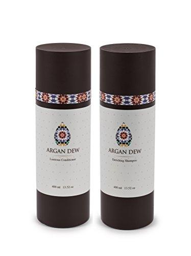The Argan Dew Shampoo and Conditioner combo gives your hair the smooth, glossy shine youve always wanted. This combination of our luxurious Moroccan oil hair treatments protect against the damages of styling while keeping your hair manageable and healthy.