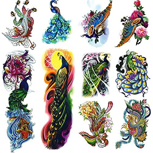- SAFE TATTOO SLEEVES. Contains 2 sheets peacock full sleeve temporary tattoos and 8 sheets fake peacock half arm temporary tattoos which are printed with high quality tattoo ink and paper meeting rigid safety and NON-TOXIC materials requirements. Do not apply to sensitive skin, near eyes, or if you are allergic to adhesives.
