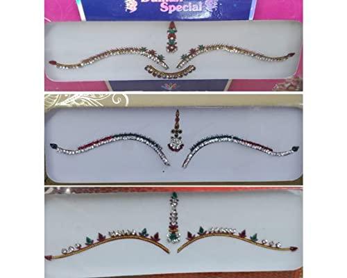 Decorative Bridal Bindi Women Sticker Bindi Designer Bindis Body Sticker for Bride Long Forehead Bindi Face Tattoo Stickers Bollywood Bindis\n\n- Bindis are dots worn on the forehead between the eyebrows right at the third eye or \"Ajna\" chakra. It symbolizes the \"shakti\" or energy from women and protects her and husband from evil. Bindis are beautiful face decorations.\n\n>> Perfect for Every Occasion.\n>> Long Lasting.\n>> Top Quality Bindis.\n>> Ready to use & reusable.\n\nHappy to inform you that we have everything you want. If you are looking for God Statues in Resin/Bronze/Brass, Handmade temple with Teakwood and oxidized Metal, Puja items, Kitchenware, Herbs and spices, Footwear, Clothing, Fashion Jewelry, Indian Wedding Items, Festival celebration items, etc. So Let me know if you are looking for something that you haven\'t seen in my shop.\n\nWe are nothing without customers! We express our deepest gratitude for your support and valuable time. Your presence gives us the motivation to do better!\n\n Words of kindness \n\n\"In the joy of others, lies our own.\"\n\n*If you have any questions, please feel free to contact us!*