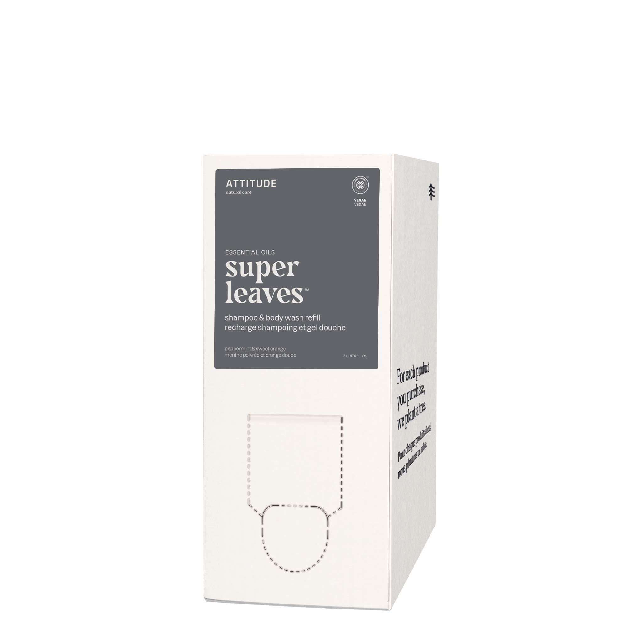 Infused with a fresh and balanced aromatic blend, ATTITUDEs Shampoo & Body Wash Peppermint & Sweet Orange is made with 98.1% naturally sourced ingredients* that cleanse and invigorate the skin and hair. This shower gel body wash and shampoo is enriched with peppermint and sweet orange essential oils known for their crisp aromas that will leave you feeling fresher than the Grand Pacific Glacier. Formulated with an invigorating ginseng extract that enhances hair texture and appearance. Minty, herbal peppermint and refreshing, juicy orange top notes blend into an aromatic heart of sweet, green sage, supported by an earthy patchouli base. EWG VERIFIEDTM, vegan and biodegradable formula available in an easy-to-use 2 L eco-refill that contains up to 81% less plastic, but up to four times more product. More body care for you, less waste for the planet. *According to ISO 16128 standards