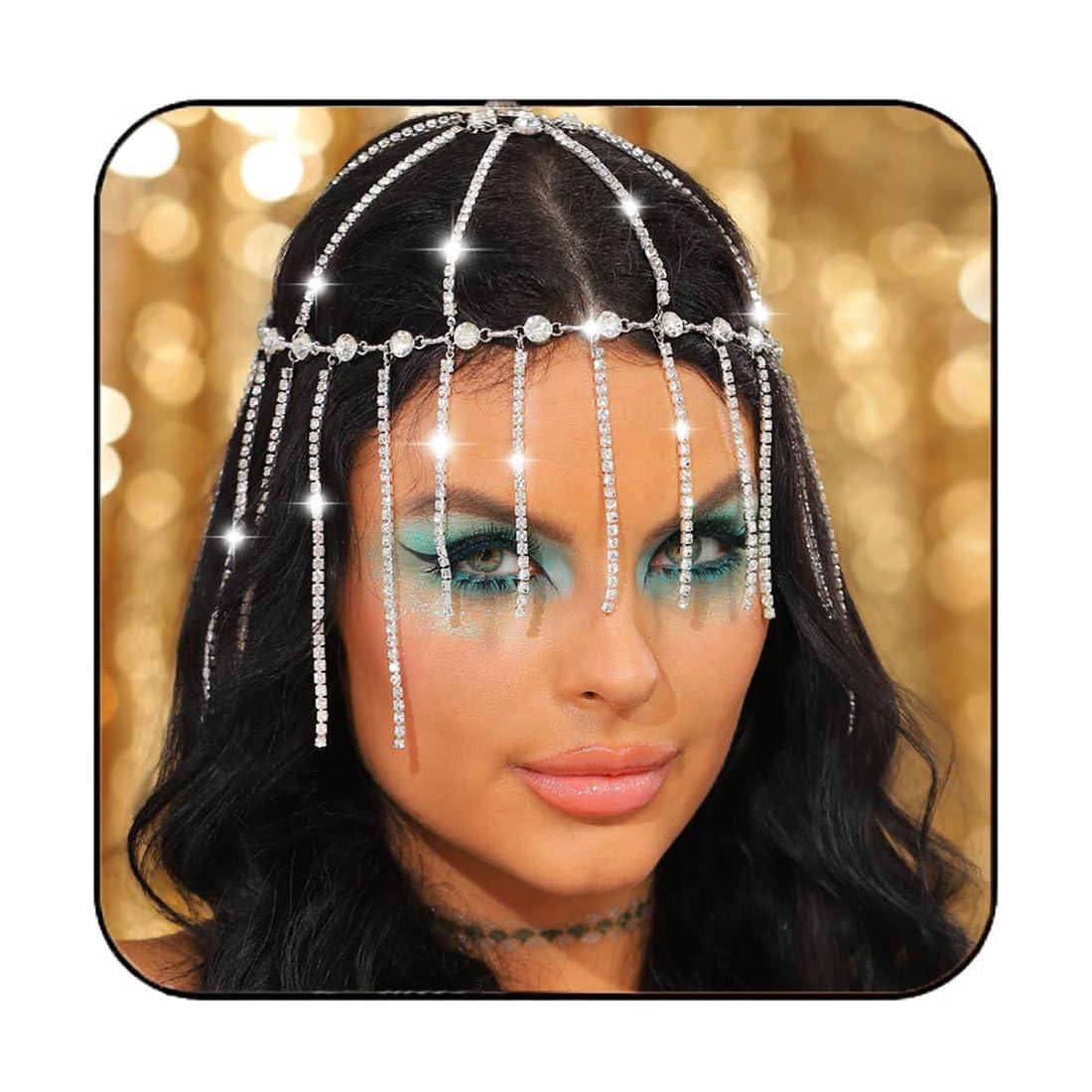 - Rhinstones head chain cap is made of sparkle crystal,rhinestones and alloy. Flapper hairpieces is very lightweight and comfotable for women hair decoration.