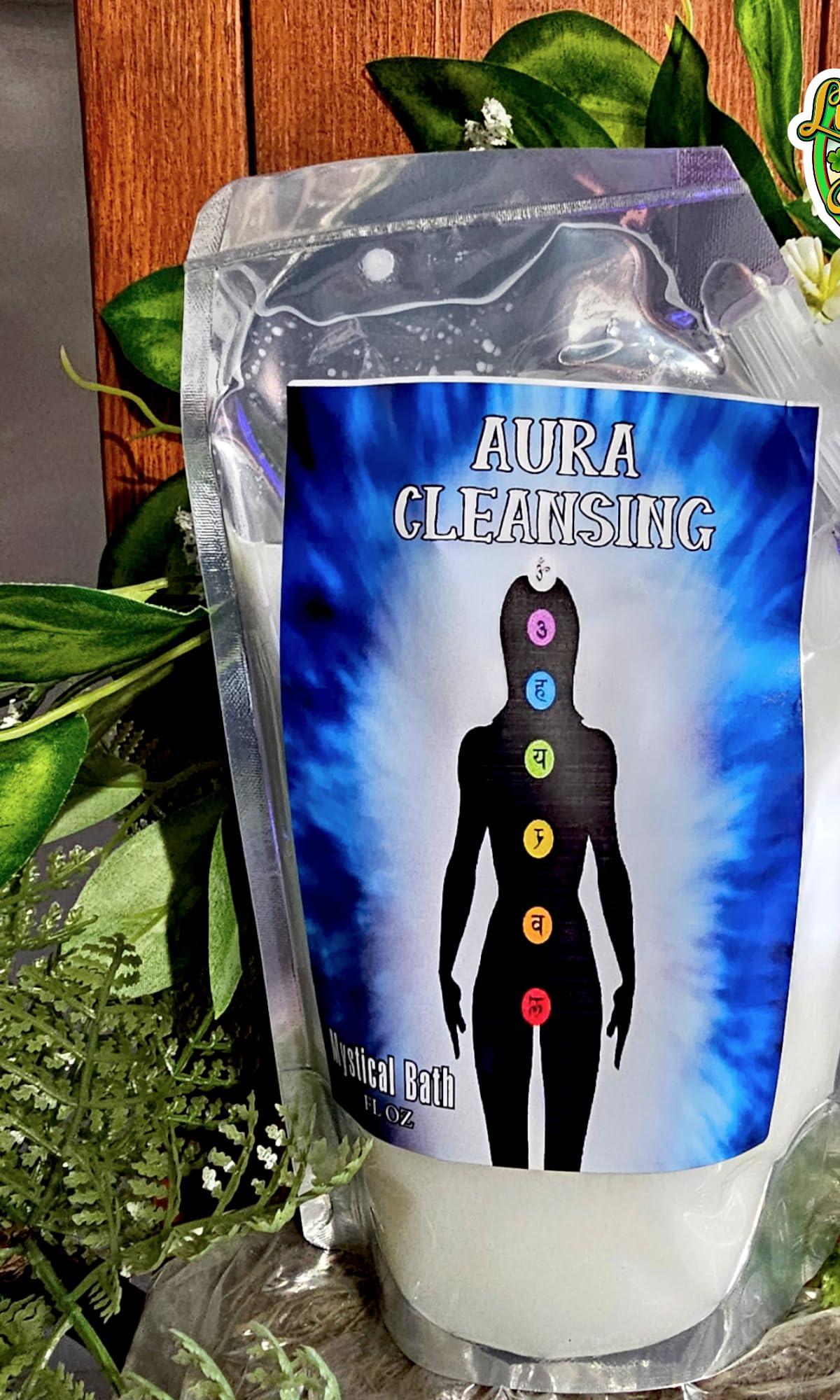 Aura Cleansing Bath Bao De Limpia Aura Just as you cleanse your body, its recommended to cleanse your Aura. This spiritual bath has supernatural essences. It helps to detach yourself from your physical matter and "release all negative energy. attracting positive vibrations to your surroundings. CONTAINS: Flowers and fresh plants, essential oils, and distilled water. Natural product. HOW TO USE BATH Use after regular bathing. Fill bath tub or bucket with warm water. Pour contents into water. If taking a bath, soak in water for at least 9 minutes. Otherwise, use ladel or cup to pour bath over entire body. Do NOT rinse after bath. Let body air dry as much as possible, though you may use a towel to pat dry your face dry.