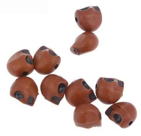Baba 10 Pieces Brown Acrylic Skull Shape adjustable plated Braiding DIY Accessory Dread lock Hair Beads Hair Braid Pins Rings Cuff Clips Tibetan Jewelry Decor