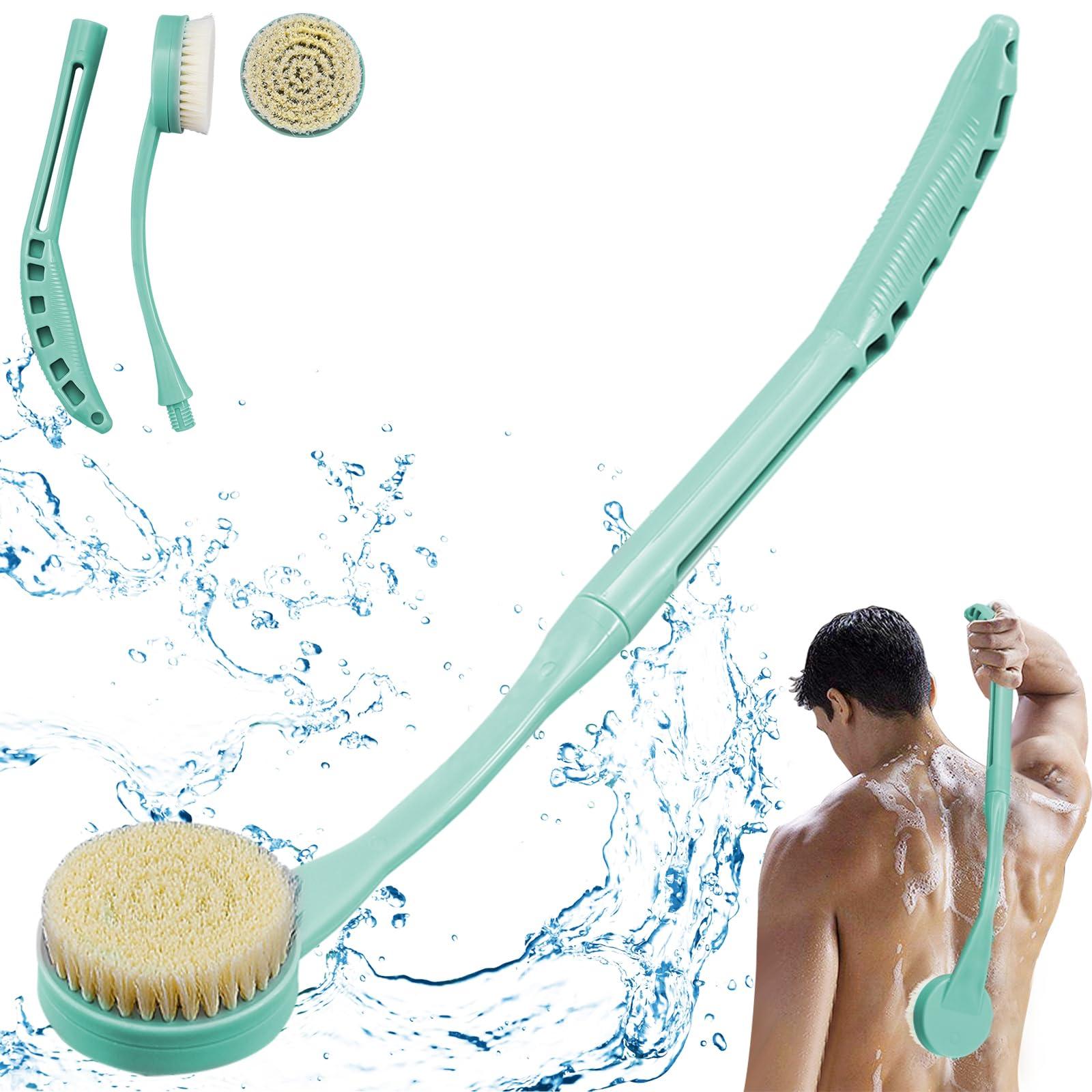 - Easy to Clean and Dry The convex design of the brush head on the back of the shower massages every muscle of the body while scrubbing, effectively removing dirt, dead skin and reducing itching from dry skin, body exfoliator, giving you a great bathing experience and cleansing impact.Body brush for cleaning long handle back brush large hanging hole designed . Just rinse it with water after each use and hang to dry