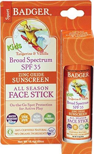 Badger - SPF 35 Clear Zinc Kids Sunscreen Stick - Tangerine & Vanilla - Broad Spectrum Water Resistant Reef Safe Sunscreen, Natural Mineral Sunscreen with Organic Ingredients .65 oz