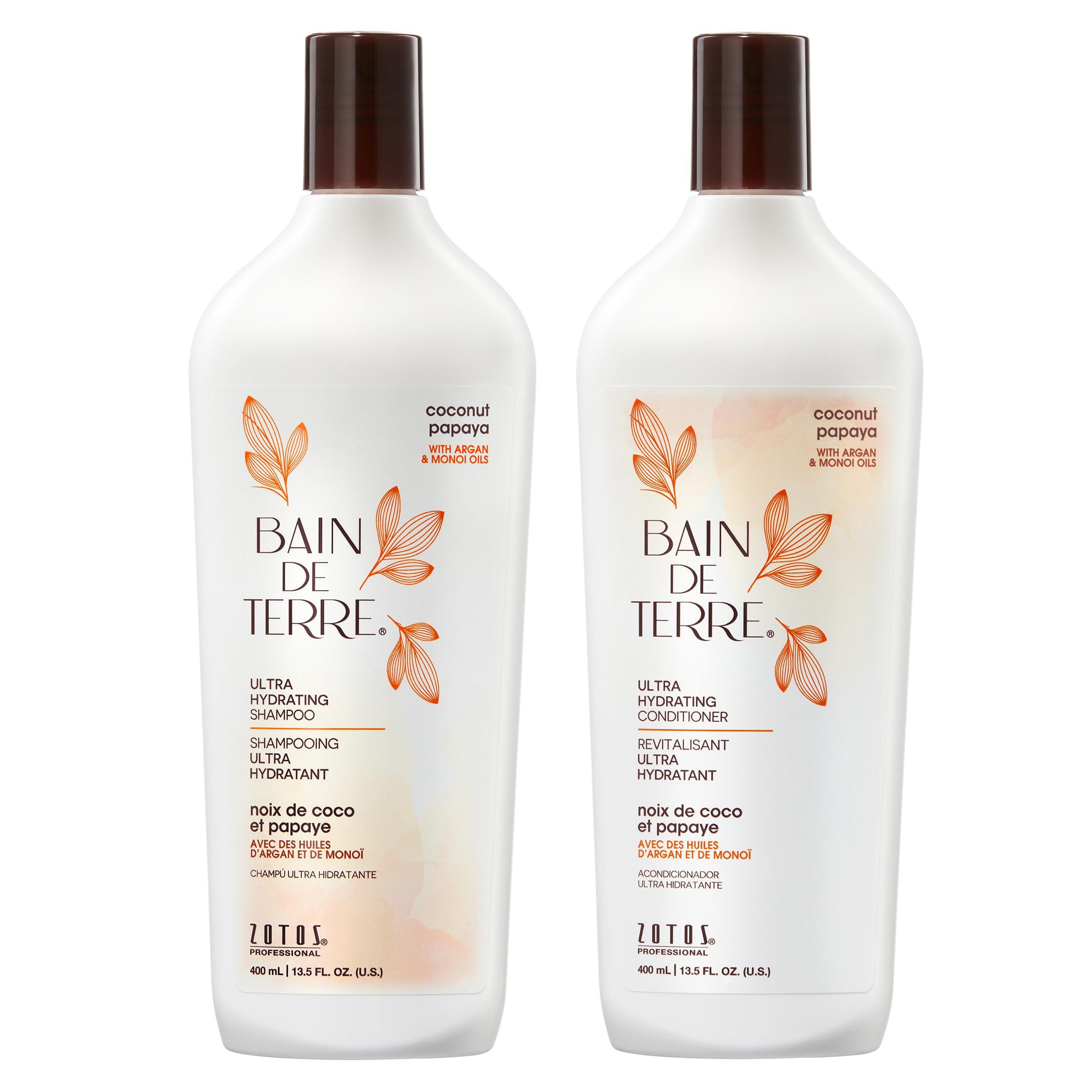 Bain de Terre's Coconut Papaya Ultra Hydrating Shampoo and Conditioner luxuriously cleanses with essential oils that hydrate overly dry, damaged hair for the ultimate moisture quench. A rich, paraben-free, color-safe, ultra hydrating shampoo infused with nourishing coconut papaya oils plus precious argan and monoi oils that lavish hair in soft, sumptuous, silky perfection. Prepare to immerse in the most luxuriously pure hair care experience nature can provide. Bain de Terre is the only paraben-free hair care line that harnesses the power of nature to help enhance and restore hair health all while delighting the senses. Explore a highly effective range of color-safe hair care and styling products that offer significant reparative benefits for every hair type, while creating an indulgent experience with rich lathers qnd lush botanical scents. Every product is infused with a variety of natural botanical extracts, plus our signature beautifying blend of precious argan and monoi oils that hair craves. Argain Oil - Legendary for its reparative and regenerative properties. Helps restore strength and brings shine to the hair. Monoi Oil - A concentrated emollient that penetrates and re-hydrates hair follicles for incredible softness. So go ahead... treat yourself to the ultimate in soft, sumptuous, silky perfection-derived from the best the Earth has to offer with Bain de Terre.