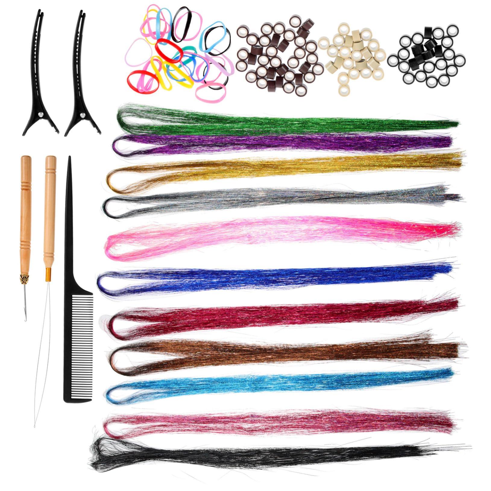 - Fairy hair tinsel kit: these hair extensions allow you to change your hairstyle quickly and easily without damaging your hair,hair glitter tinsel kit