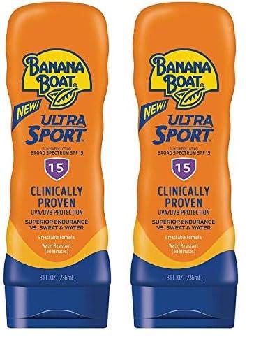 Banana Boat Banana Boat Sport Ultra SPF 15 Sunscreen Lotion, 8oz | Banana Boat Sunscreen SPF 15 Lotion, Oxybenzone Free Sunscreen, Sunblock Lotion Sunscreen, Banana Boat Lotion SPF 15, 8oz (Pack of 2)
