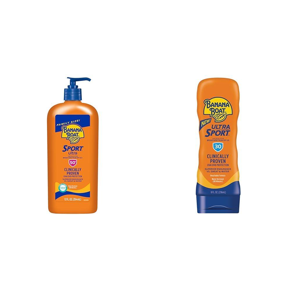 - Product 1: SUPERIOR ENDURANCE VS. SWEAT & WATER From family fun to hardcore competition, Banana Boat Sport Sunscreen provides strong sun protection that stays on so you can play on