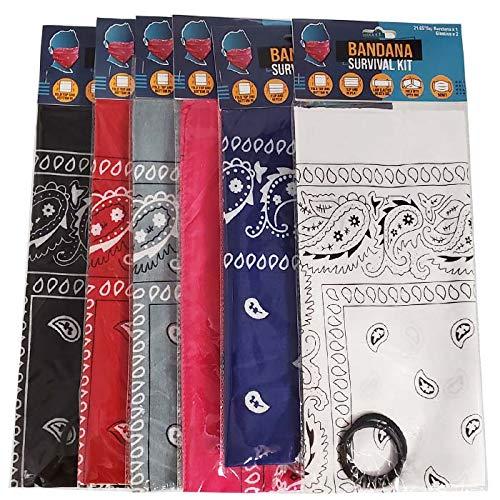 Bandana Survival Kit Assorted Colors 21.65Sq, Case of 12