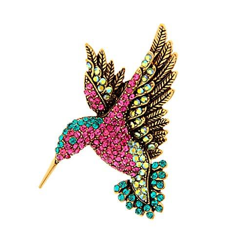 Baoblaze Antique Gold Tone Bird Hummingbird Multi Color Austrian Crystal Pin Brooch