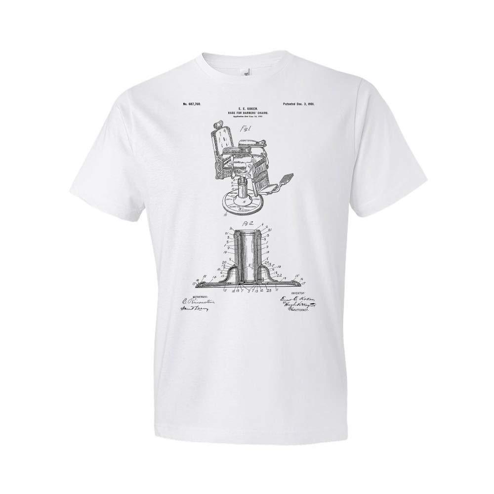 - 3XL Mens athletic fit t-shirt in White color featuring a Barber Chair patent illustration. Designed by Patent Earth, this t-shirt is made to order with your choice of size and color!