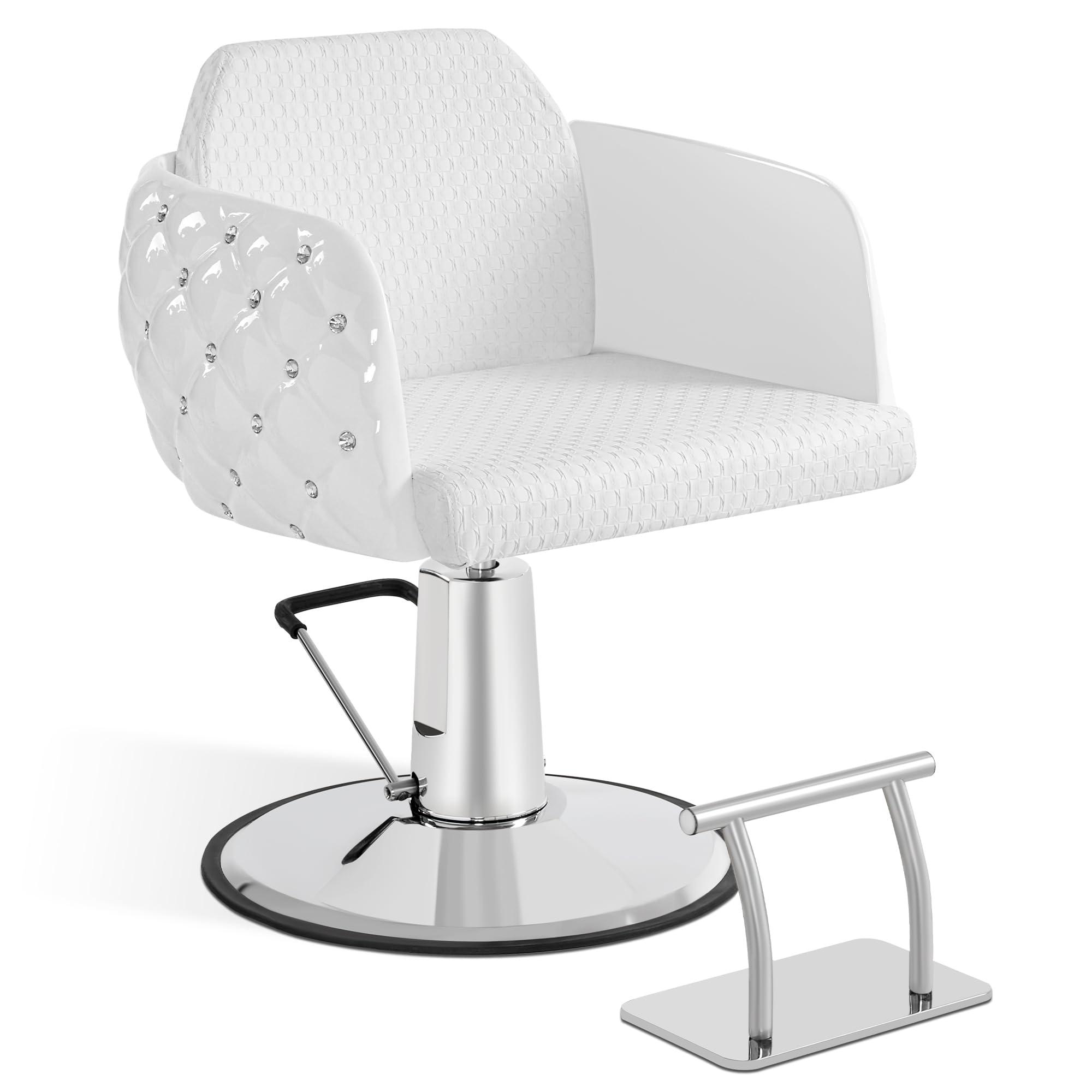 - Luxurious Style: This salon chair has an attractive tub-style design with a round and beautiful shape. Smooth and glistening fiberglass material, plus shining rhinestone buckles, highlights the luxurious taste. The leather with interlaced woven style also demonstrates elaboration.