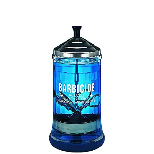 Allows for total immersion of nail tech implements. Sturdy, sparkling glass and stainless steel. Self-draining, retrievable implement basket. Conserves space, while offering easy access to implements. Stainless steel parts guaranteed against rust for 10 years. Ample capacity- holds 21 fl. ozs. Non-slip, rubber ring at base for added stability. For use with Barbicide hospital grade disinfectants. Size: 4" diameter; Height: 8" tall; Capacity: 21 fl. ozs.