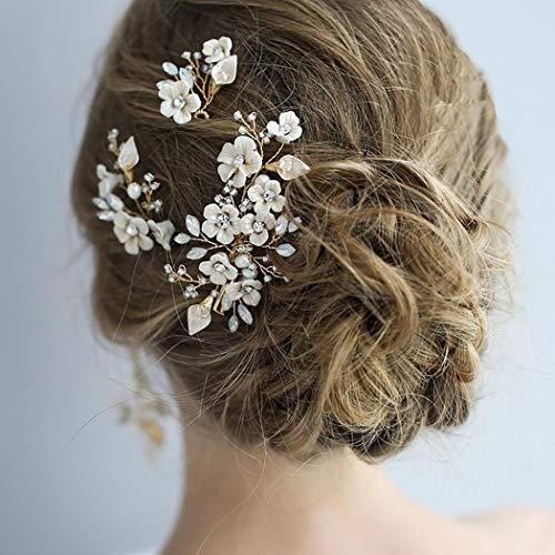Barode Barode Bridal Wedding Hair Comb Silver Flower Rhinestone Sparkly Crystal Bride Leaf Side Combs Pearl Hair Accessories for Women and Girls (Gold)