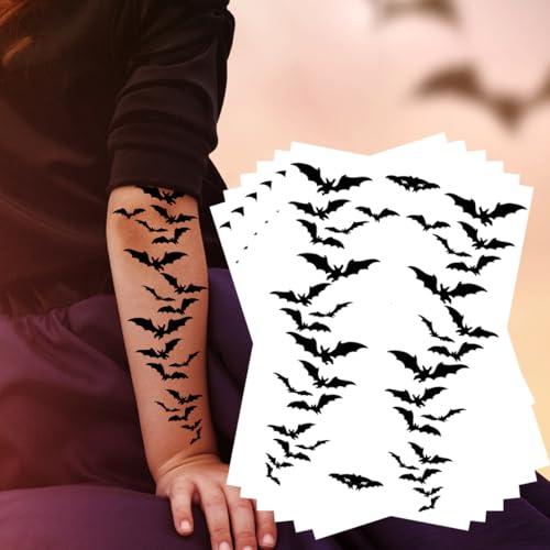- BAT DESIGNS::-- These bat tattoos feature six sheets of black bat designs, perfect for adding a touch to your Halloween makeup, cosplay, festivals, and parties. Each sheet measures 5.5x8.2 inches.