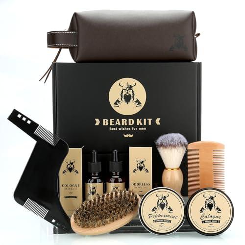 - Unique Christmas Gifts For Men- 9 pcs beard grooming kit with gifts box includes 2 pcs beard oil, beard balm, beard shaving soap, beard brush, beard comb, wooden beard brush, beard shaping tool and pu leather storage bag. Our beard growth & beard care kit set can be great gifts for men such as him, husband, boyfriend, fiance, dad and brother during valentine's day, father's day, thanksgiving, Christmas, New Year, birthday and anniversary.