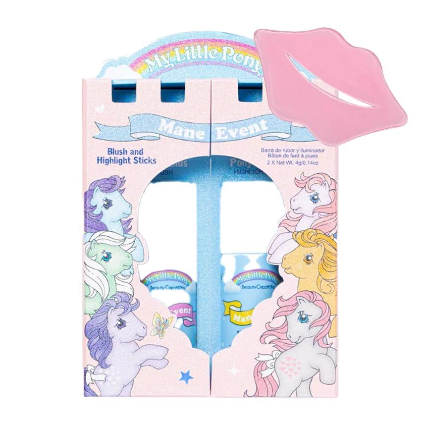 Indulge in the Glam Lux Beauty Bundle, featuring the Beauty Creations X My Little Pony 'Mane Event Blush and Highlight Stick' - a moisturizing, buildable, and lightweight illuminating stick that delivers a radiant glow. This blush and highlight duo is perfect for creating a luminous, dewy complexion. Complement your look with the included collagen lip mask, designed to nourish and hydrate your lips for a plump, luscious pout. This bundle offers a touch of whimsy and luxury for your makeup routine. With its blendable formula and versatile shades, you can effortlessly achieve a natural or glamorous look. Elevate your beauty regimen with this must-have collection.