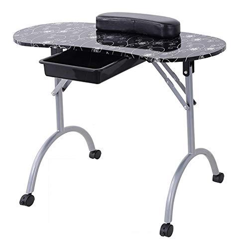 Beauty Life Nail Station Portable Foldable Manicure Nail Table with Large Drawer, Lockable Rolling Wheels