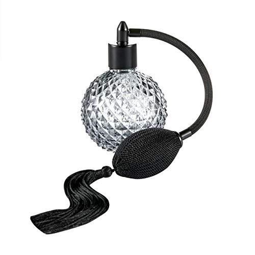 - NOTE:The product needs to be placed on the table(horizontally) when using it, if it is placed on its side or upside down, the perfume inside may leak out;Glass bottle body and plastic lid with gray tassel spray atomizer, vintage and fashionable design