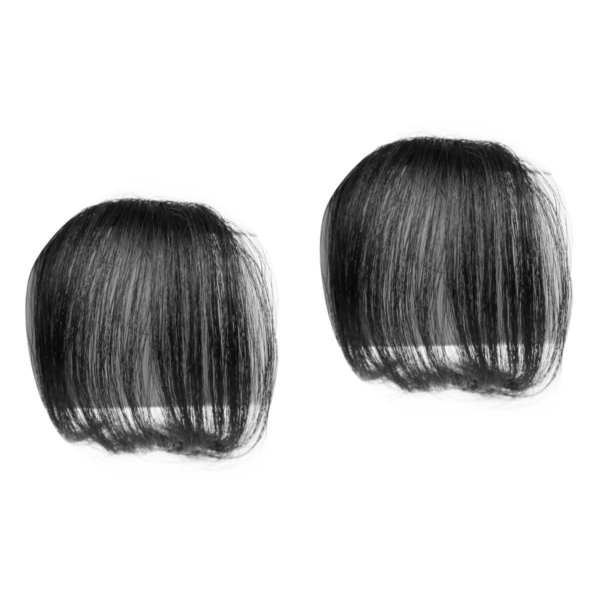 2 x Fashion One Piece Clip in Hair Bangs / Thin Fringe / Hair Extensions Natural Fake Hair Pieces (Black)