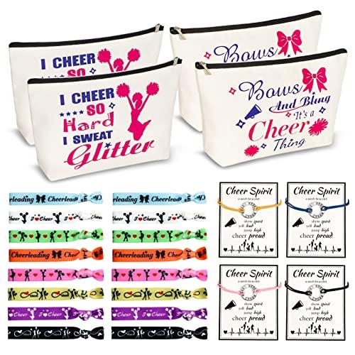 - CHEERLEADER GIFTS4 Canvas Cosmetic Bags + 4 Blessing Card Bracelets + 16 Hair Ties, Full of Content and Personality. Perfect Gifts for Cheerleaders, Cheer coach, Cheer Sisters, Cheer Moms.