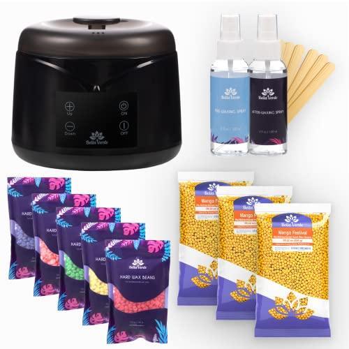 Bella Verde Bella Verde Wax Warmer Home Waxing Kit - Wax Kit for Hair Removal Wax Pot Professional with LED Display and 8 Bags Painless Hard Wax Beans, 20 Wax Sticks for Face, Legs, Arms, Bikini