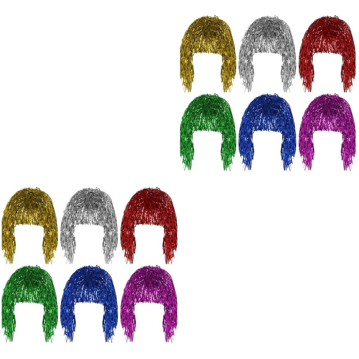 - Tinsel Party Wigs made of metallic foil material, shiny and light weight, also reusable. Use these tinsel wigs make you more attractive on party.