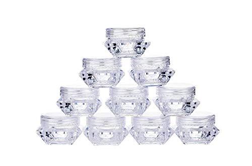 Material: Grade PS Color: Clear Design: Diamond-shape Capacity: 5g/5 ML Size: 1.30 x 0.87 inches(0.33 x0.22cm)