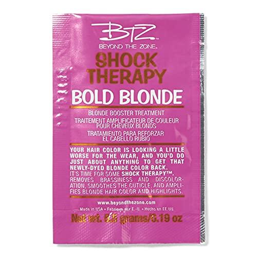 Beyond the Zone Shock Therapy Bold Blonde Treatment removes brassiness and discoloration from hair while smoothing the cuticle to reveal amplified blonde color and highlights.