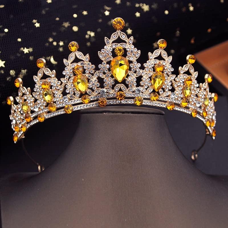 BIEMBI Hair Jewelry Crown Tiaras for Women Rose Red Wedding Tiara Crystal Bridal Crown Gold Color Diadem Veil Tiaras Hair Accessories Princess Headpieces Head Jewelry (Color : Yellow)