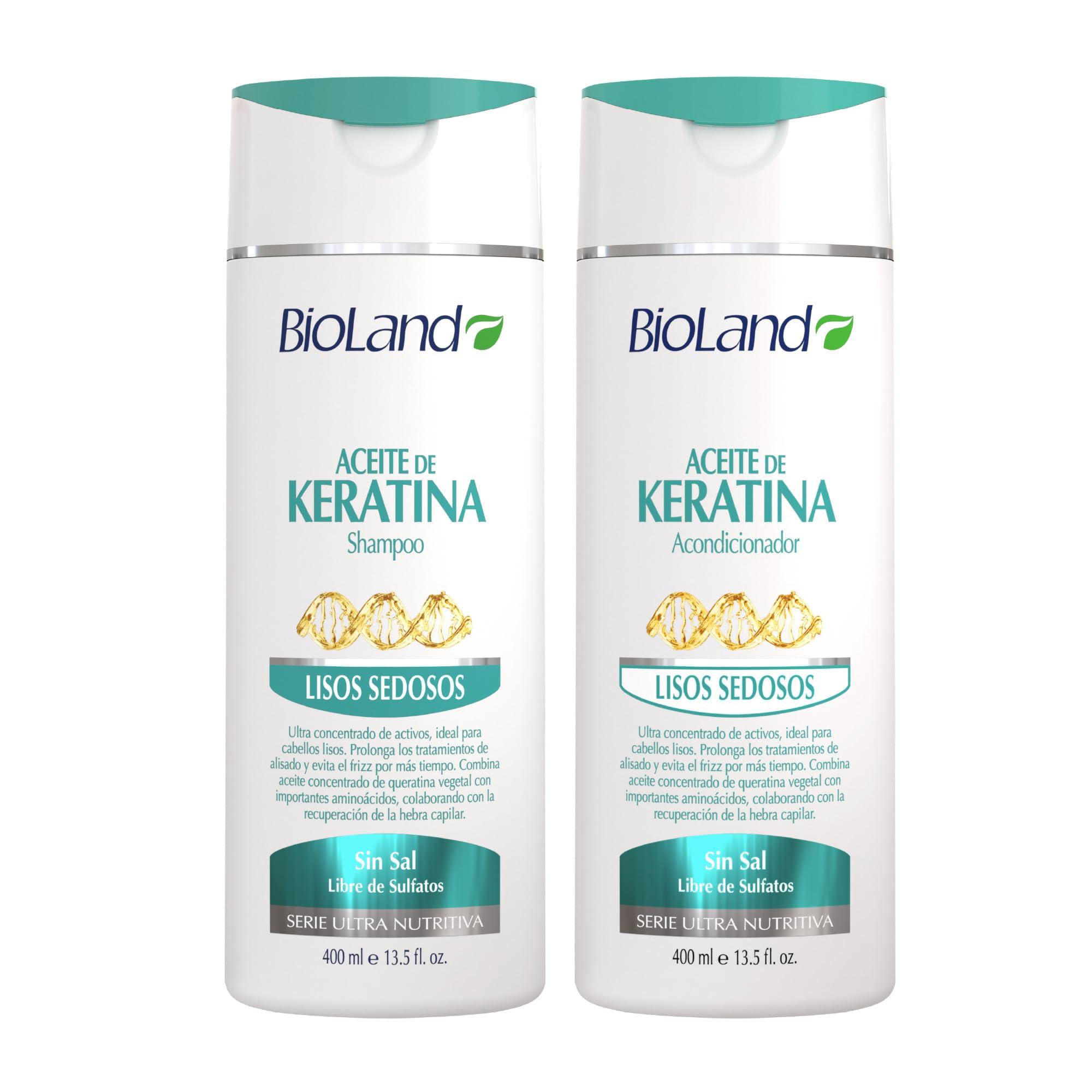 BioLand Keratin Oil Shampoo and Conditioner Bundle - Ultra-Concentrated Hair Care for Treated & Straight Hair (400ml each)