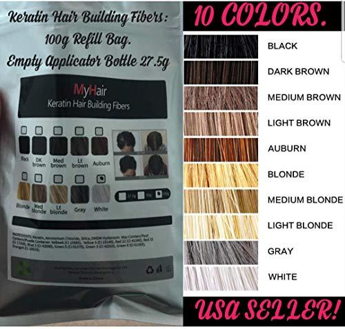 BLACK Bald Thinning Hair Loss Concealer Fibers- Hair Building Fibers-100g REFILL BAGS-THICK HAIR INSTANTLY-10 COLORS (AUBURN-100G)