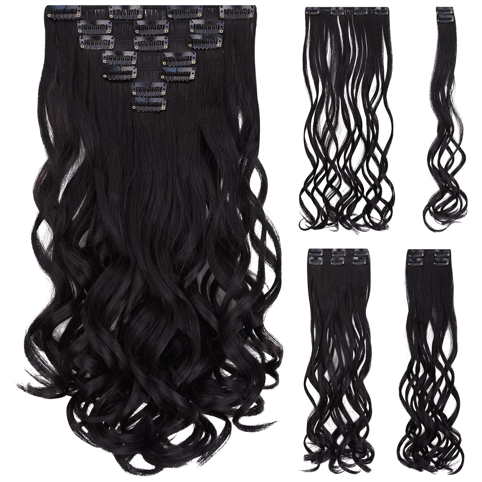- Material and product: This product is made of heat-resistant fiber, soft, fluffy, not easy to tangle,7pcs Per a Package. 7 Pieces with 16 clips(18" (20cm) width with 4 clips :26" (15cm) width with 3 clips,24" (10cm) width with 2 clips,22" ( 5cm ) width with 1 clip)