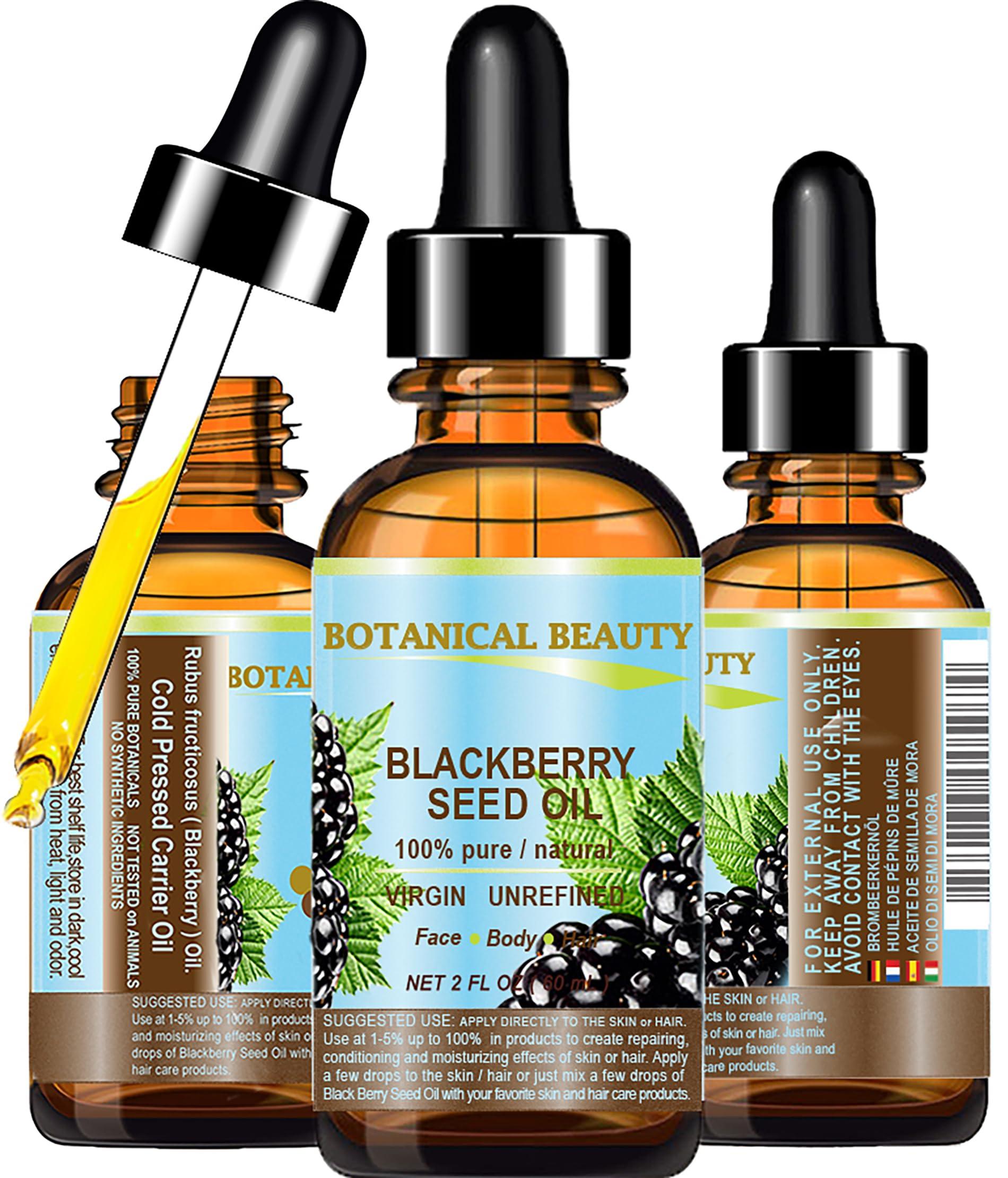 - Botanical Beauty BLACKBERRY SEED OIL is one of the richest natural sources of vitamin C and a remarkable and stable source of omega 3 and omega 6, vitamins E and minerals. Significantly higher in Vitamin C and contains a high amount of vitamin E, The oil is a good source of omega 3 and omega 6 fatty acids. Very Stable Shelf Life. Little Goes a Long Way, Absorbs Quickly, Not Greasy, Chemical Free, Not tested on Animals, Does not contain any preservatives