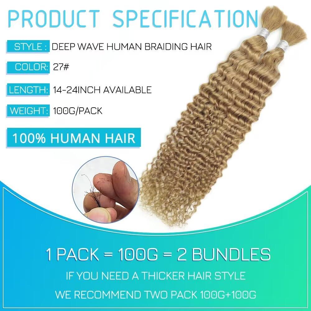 - High Quality Bulk Human Hair:The Deep Wave Milky Way Human Hair Braiding Hair No Weft Is Made Of 100% Unprocessed 10A Brazilian Virgin Human Hair; The Texture Of Human Hair Braiding Hair Is Incredibly Soft More Natural; Comfortable And Smooth,True To Length, No Tanglem,No Strange Smell,Bouncy And Glossy, Full And Thick. Blends Perfectly With Your Hair, Looks More Realistic, Prettier