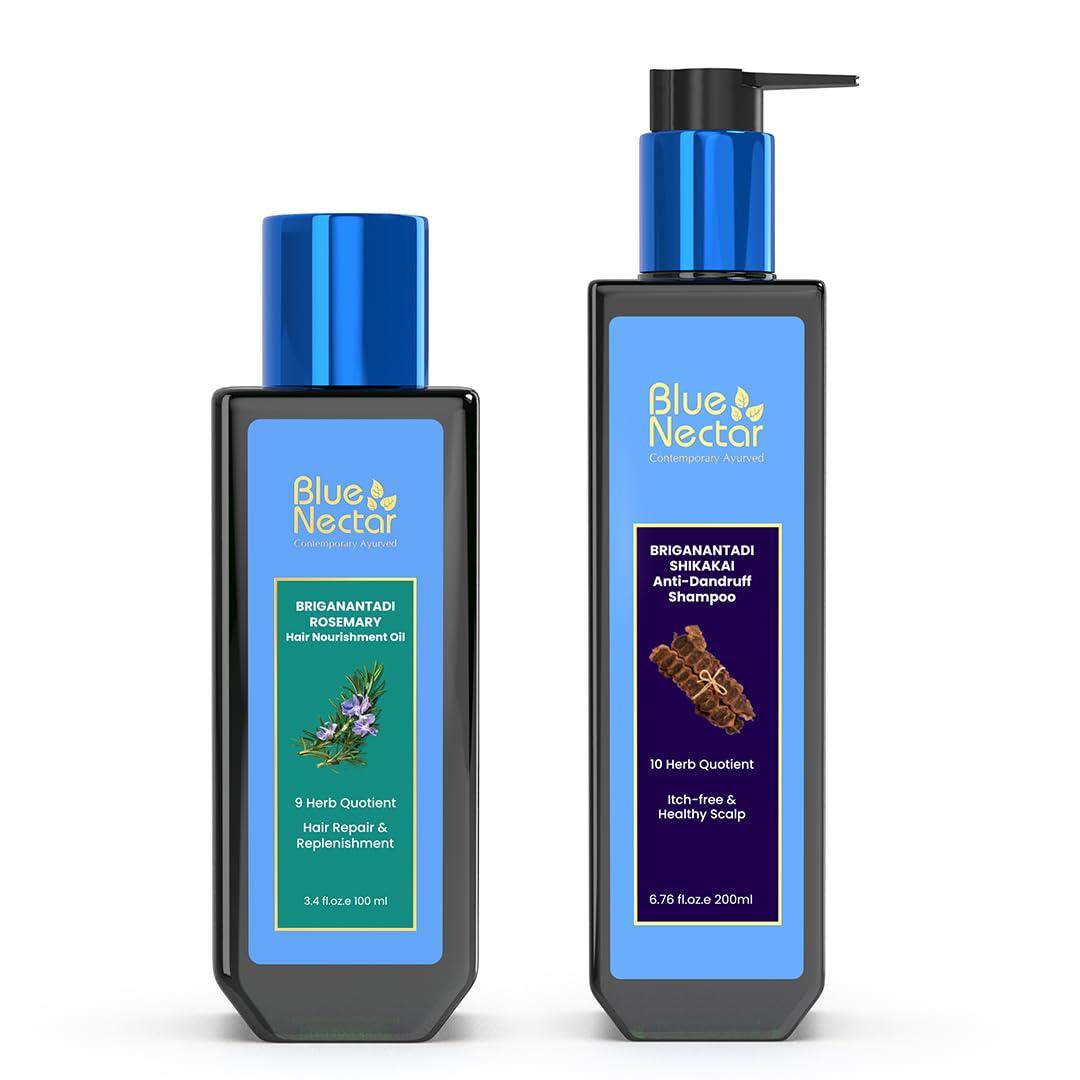 Transform your hair care routine with the powerful synergy of Blue Nectar's Ayurvedic Hair Growth Oil and Anti-Dandruff Shampoo. Our meticulously crafted formulas, enriched with the goodness of nature, provide a holistic solution for dry, damaged, and frizzy hair.