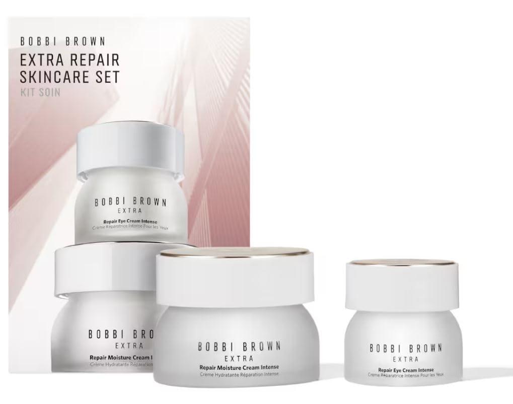 Bobbi Brown Extra Repair Skincare Set- Kit Soin ( 1.7 fl oz liq/ 50 ml) (.5 fl oz liq/ 15 ml) Treat yourself to a pair of these revitalizing Extra Repair Complex formulas for face and eyes. Extra Repair Moisture Cream Intense plumpsand smooths skin with luxurious hydration, and Extra Repair Eye Cream Intensehelps reduce the look of undereye fine lines, wrinkles, dark circles, and puffinessover time.